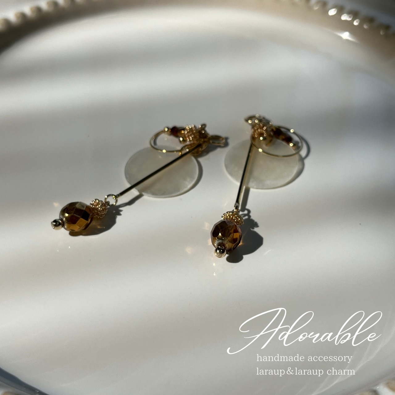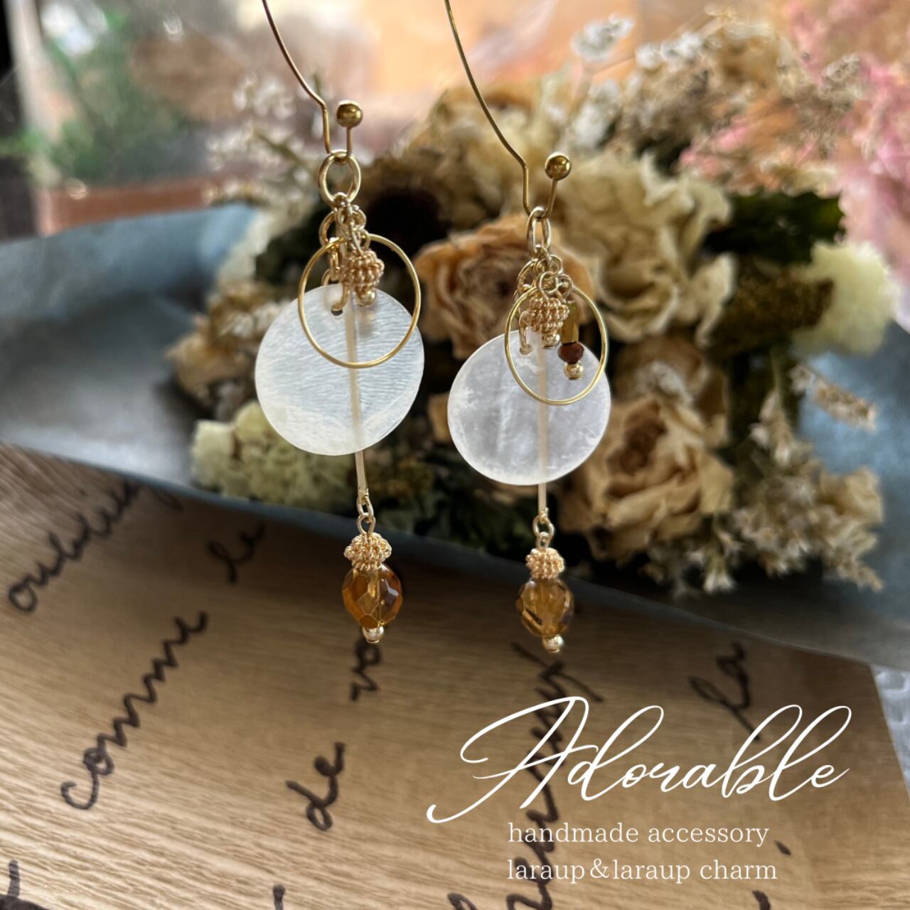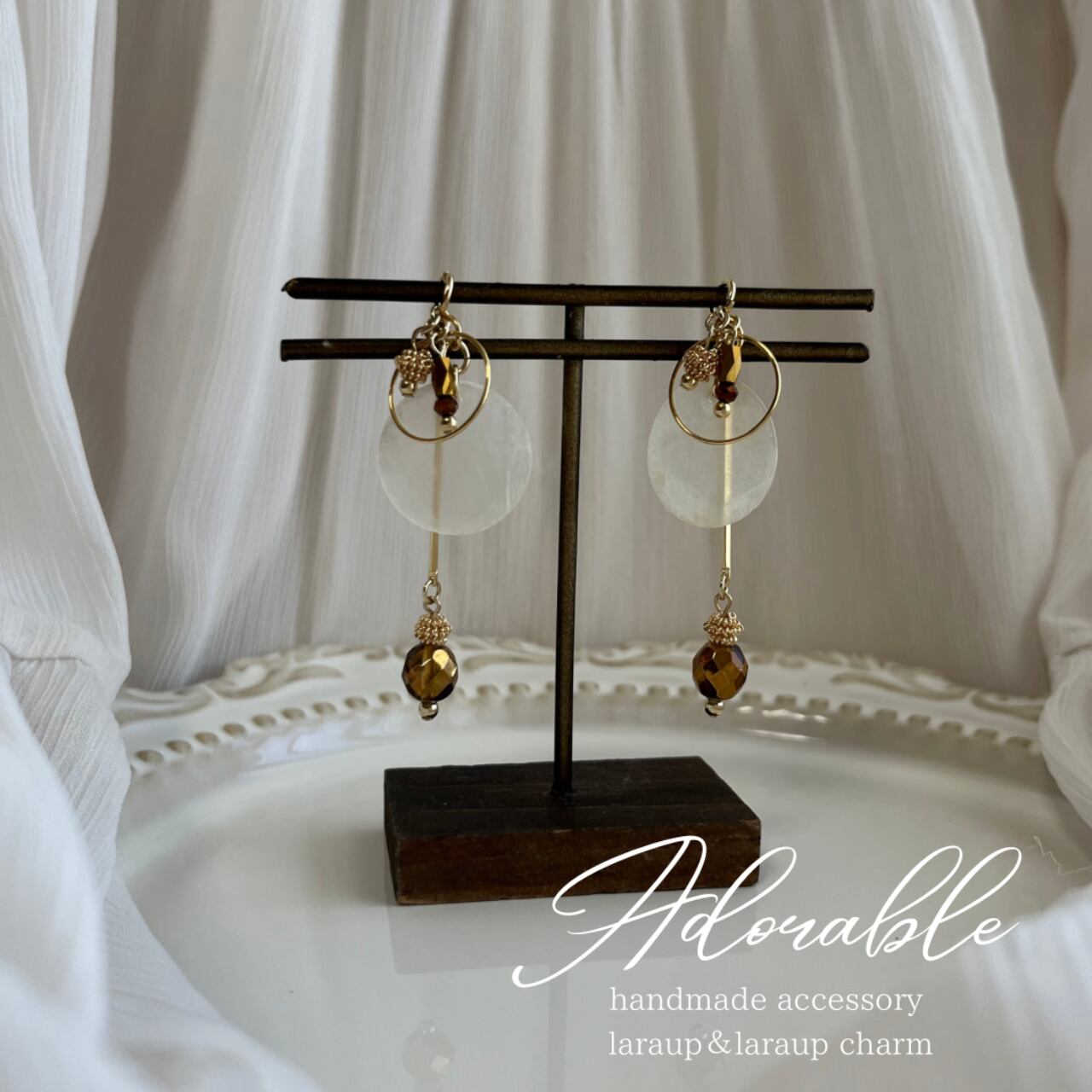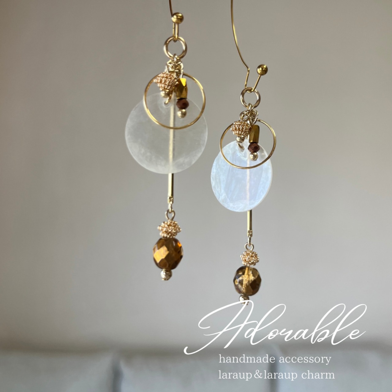 画像はLaraupというイヤーフックタイプ用の金具になっていますが、ピアス.イヤリングでお作りできます。