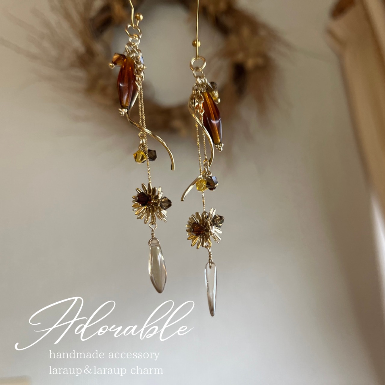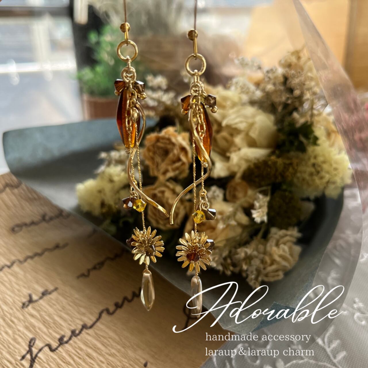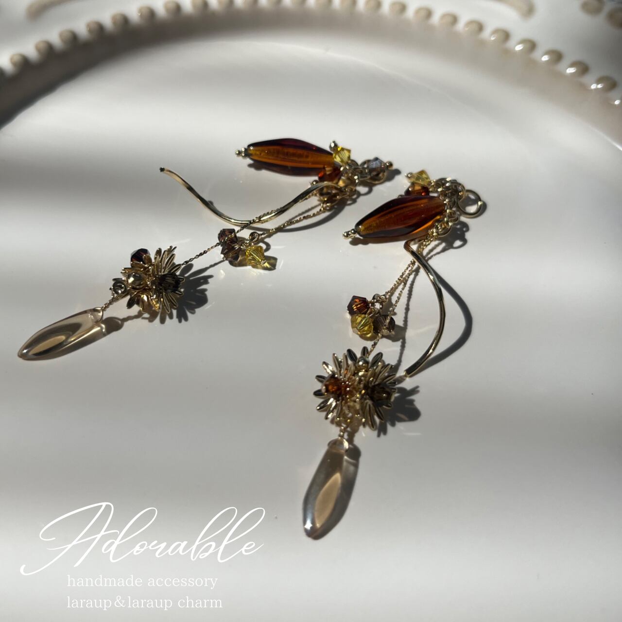 画像はLaraupというイヤーフックタイプ用の金具になっていますが、ピアス.イヤリングでお作りできます。