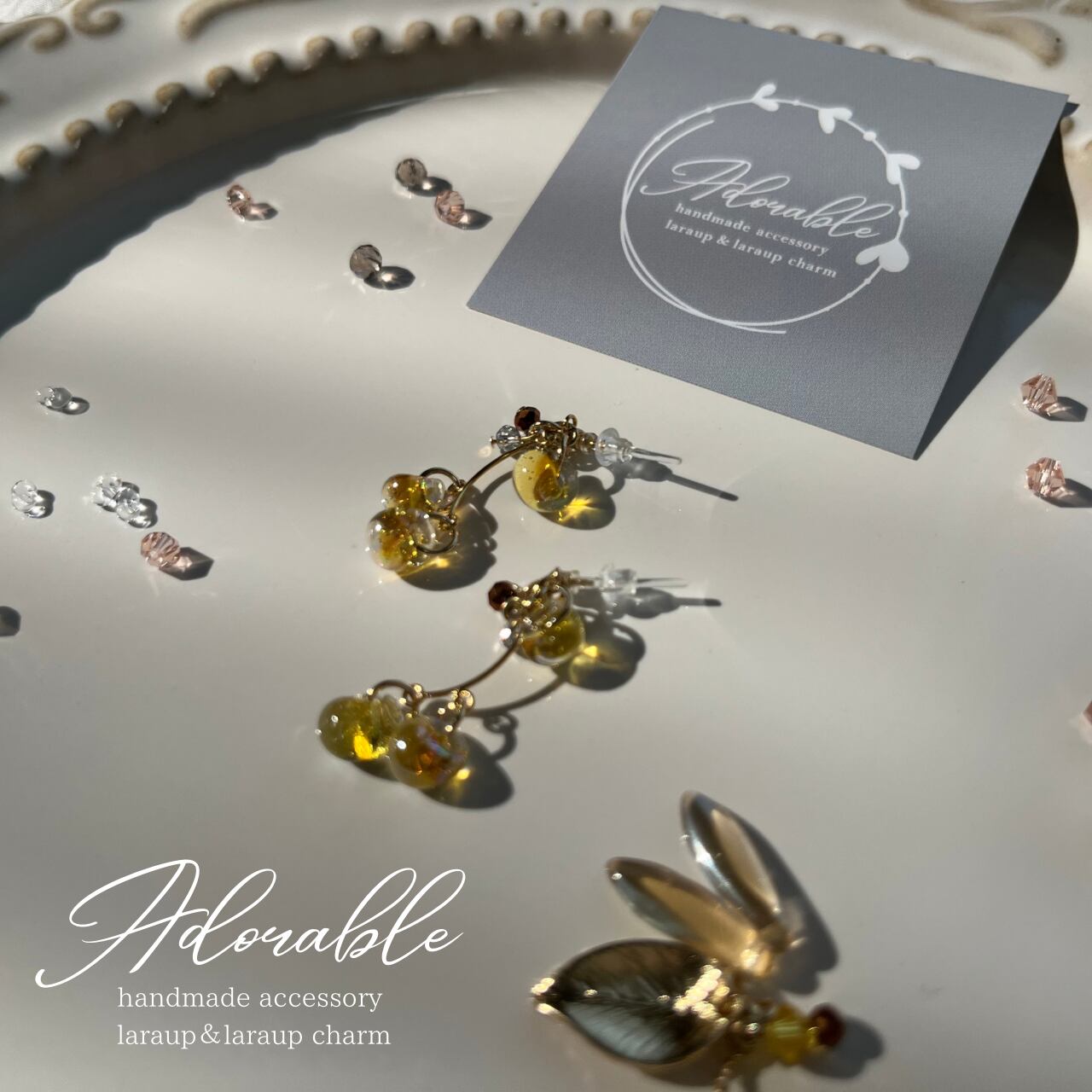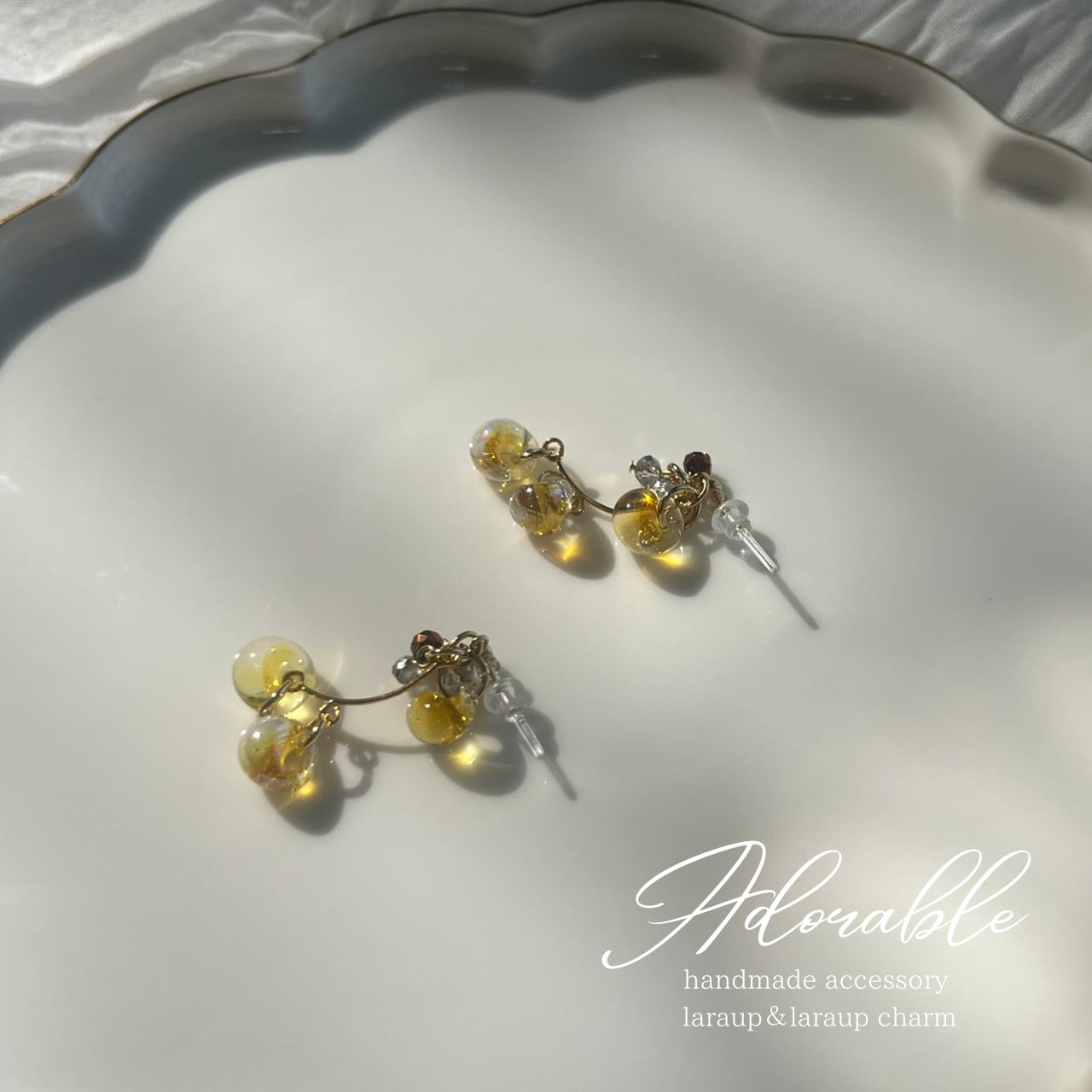 ハンドメイドのため、制作時の小さな傷等、気になる方はご購入をお控えください。また、繊細な作りのため、着脱時のお取り扱いには十分ご注意いただき、優しくお付き合いください。