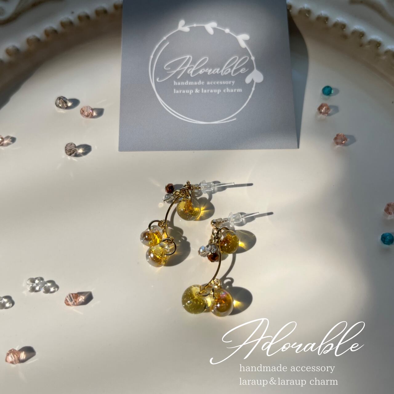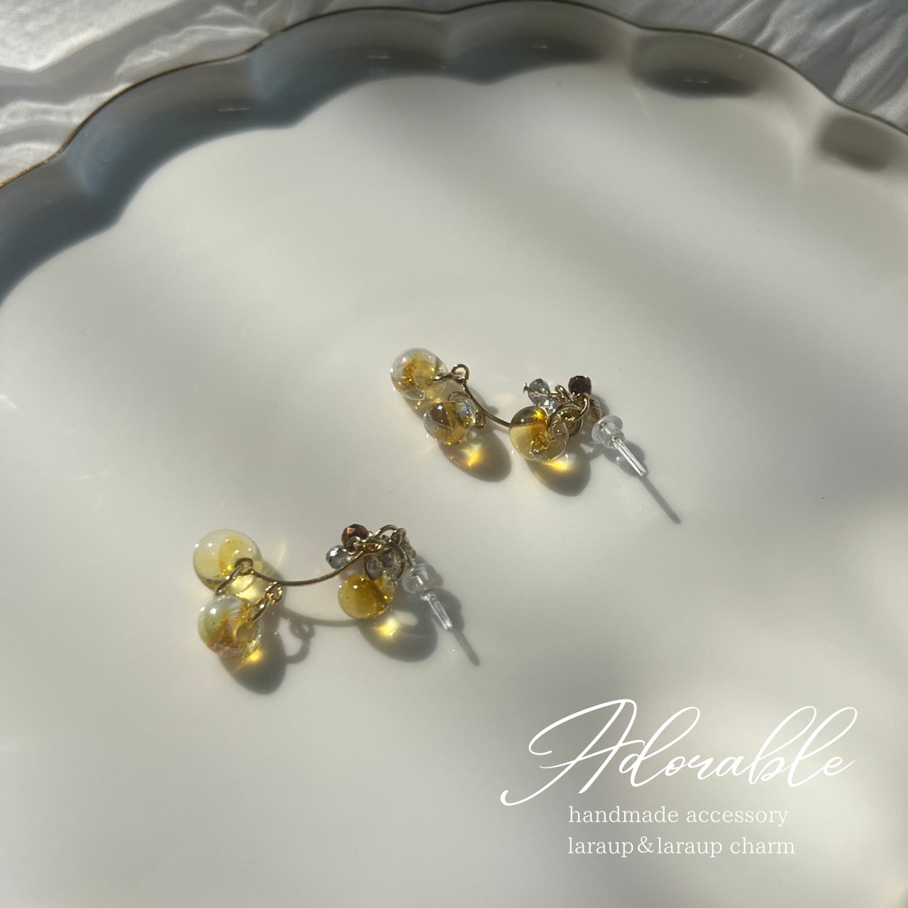 画像樹脂ピアスになっていますがLaraup用、ピアス.イヤリングでお作りできます。