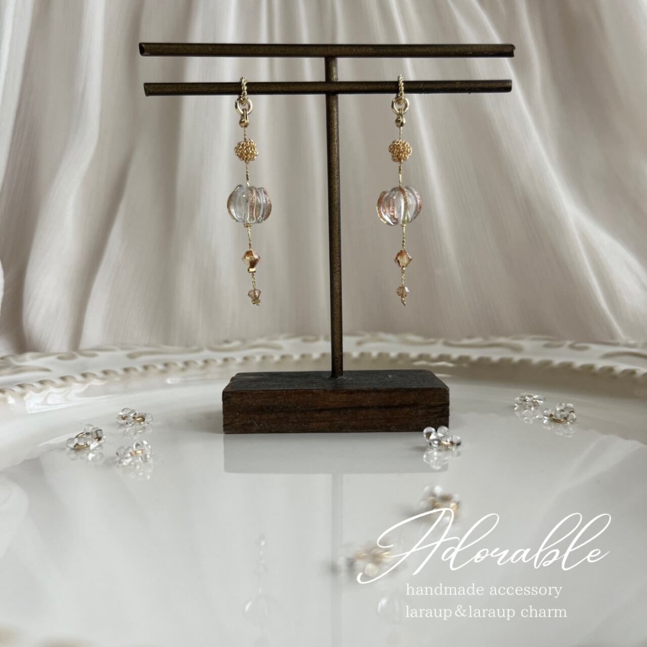 画像はLaraupというイヤーフックタイプ用の金具になっていますが、ピアス.イヤリングでお作りできます。