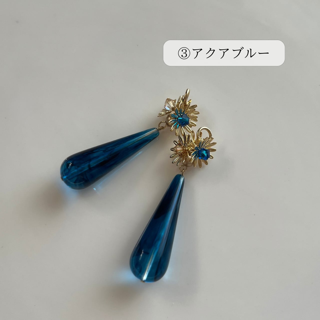 少し大きめなドロップ型のビーズに、メタルフラワーを合わせています。