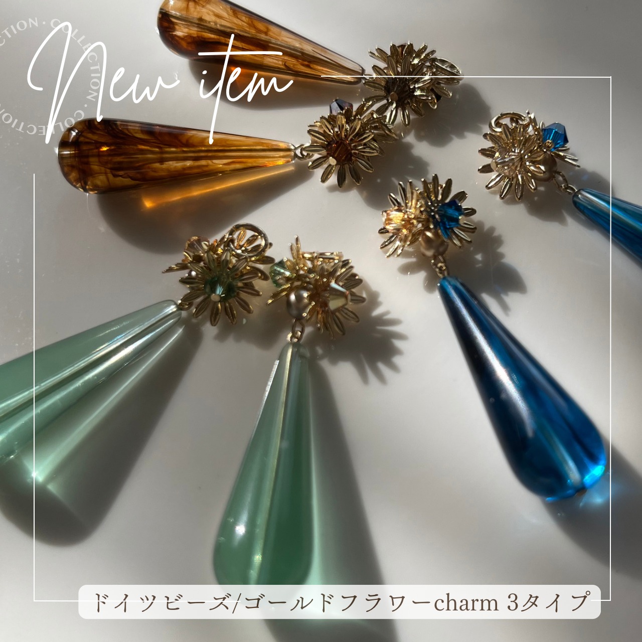 ✴︎ドイツビーズ&メタルフラワーcharm✴︎3タイプ