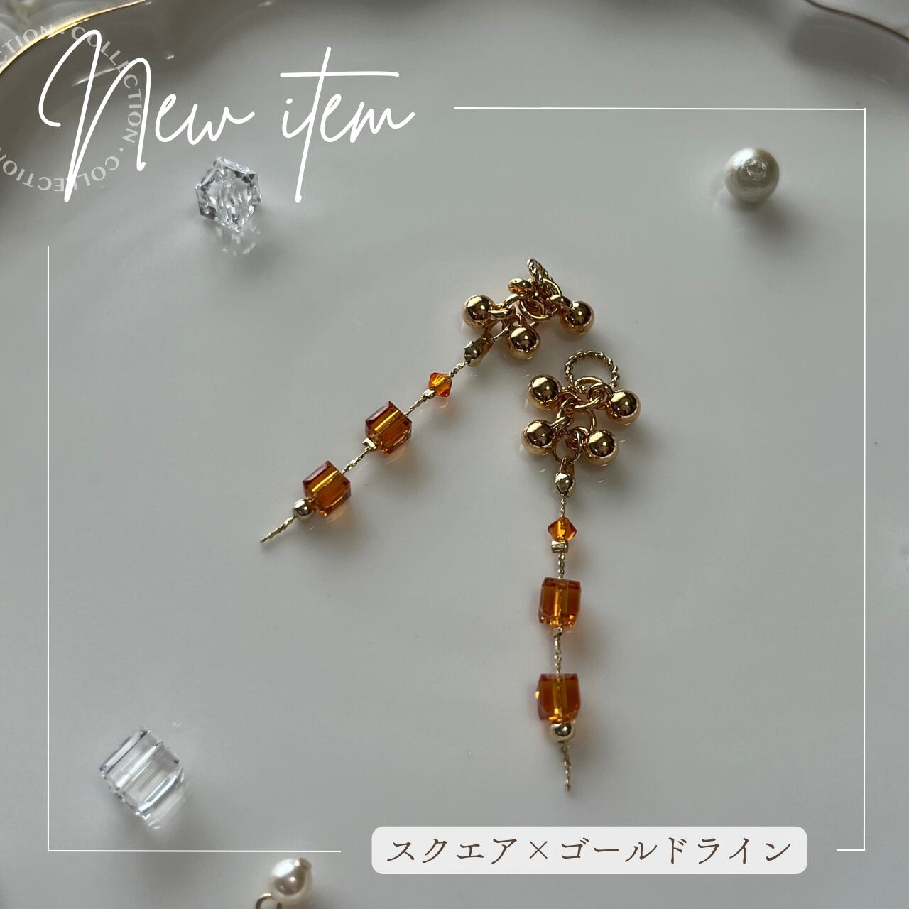 再販✴︎スクエアビーズ/ゴールドラインcharm✴︎