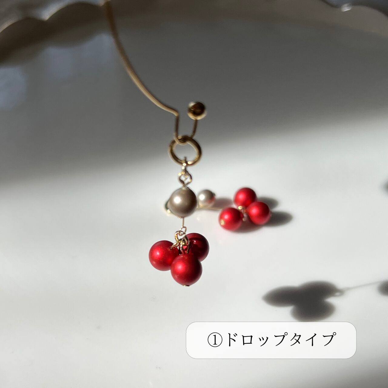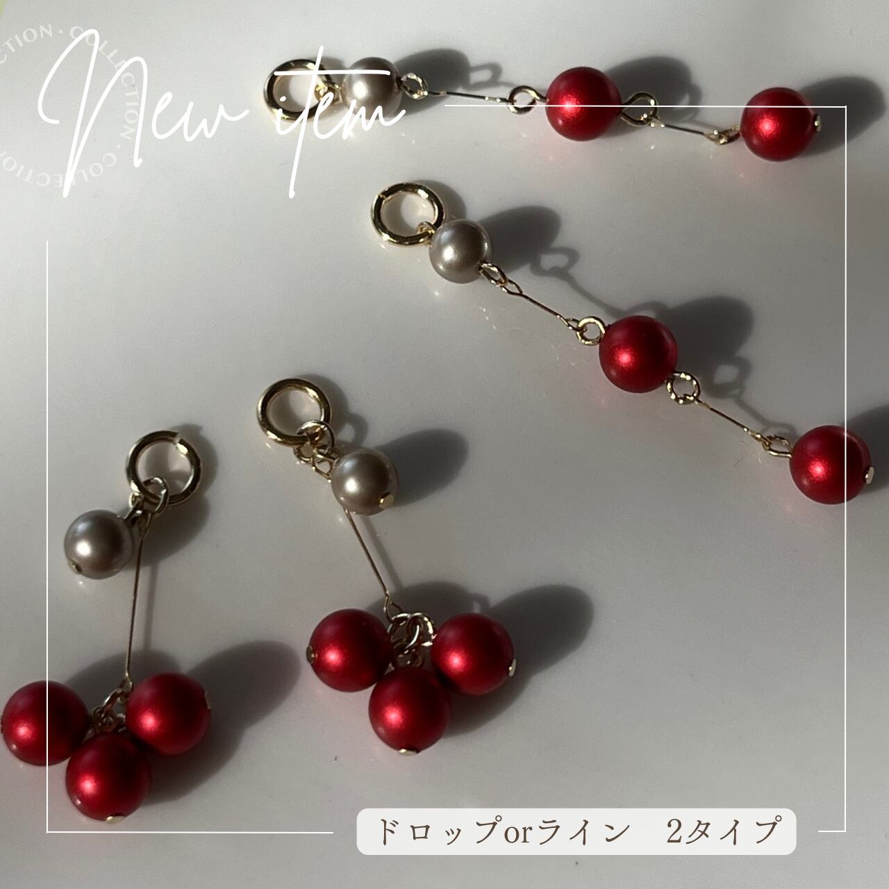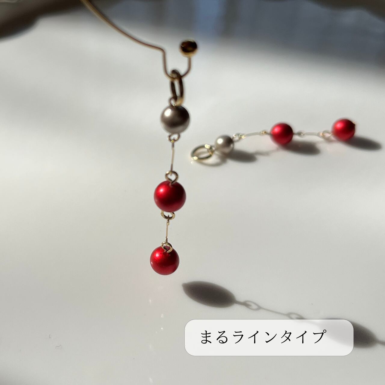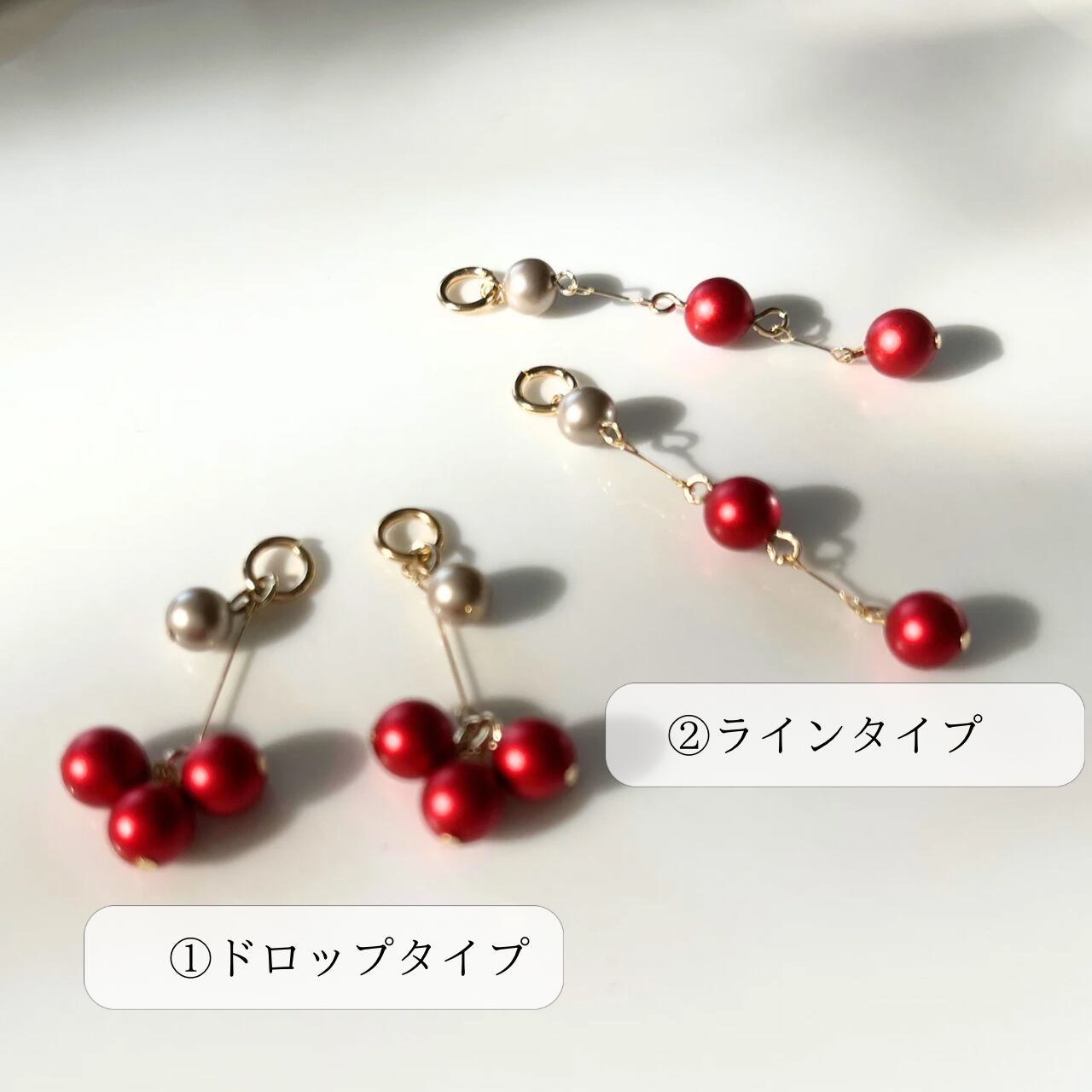 ルージュのような、魅惑的な赤いクリスタルパールにベージュのクリスタルパールをプラスして、華やかだけど、少しシックなイメージに仕上げています。タイプも2つご用意。