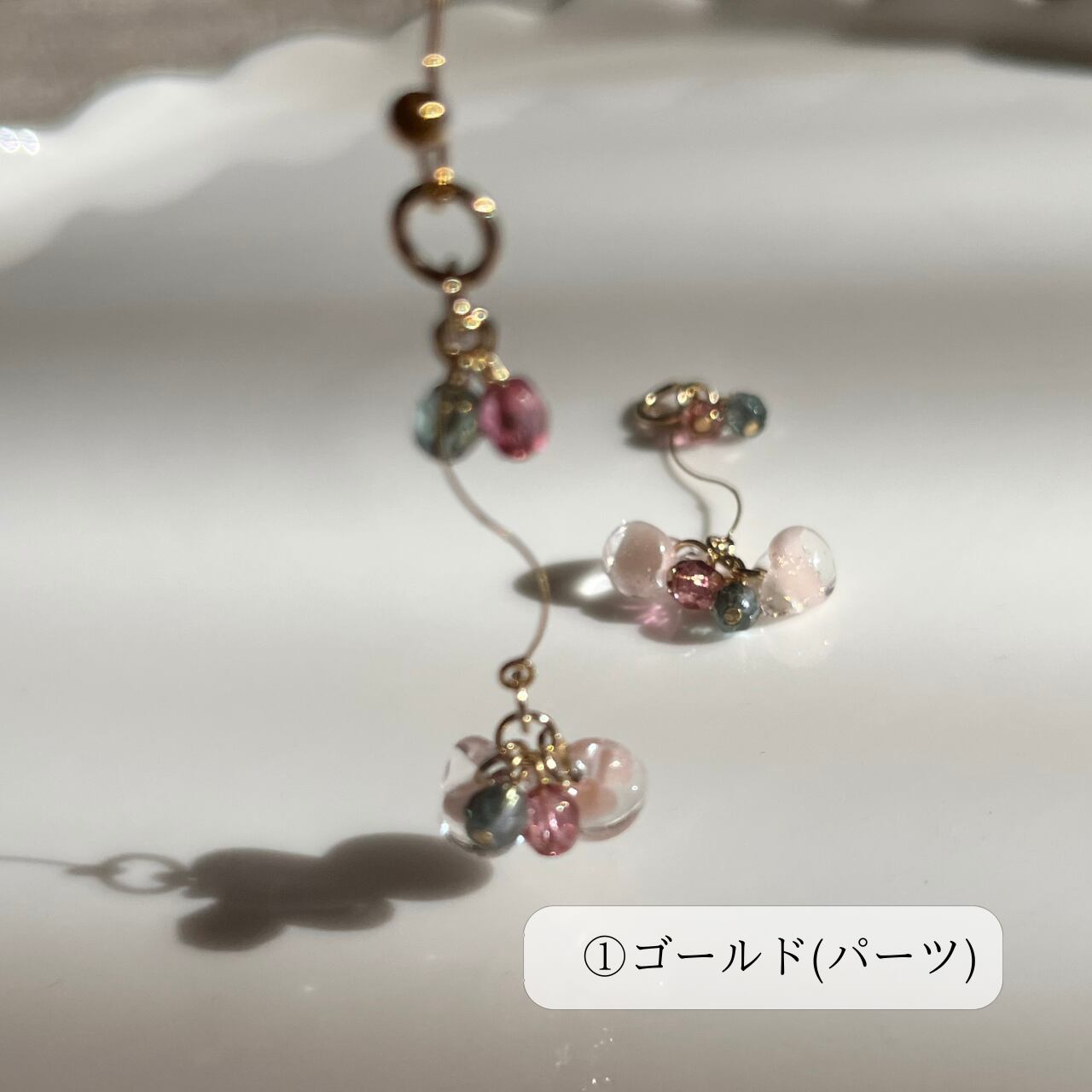 画像はLaraupというイヤーフックタイプ用の金具になっていますが、ピアス.イヤリングでお作りできます。