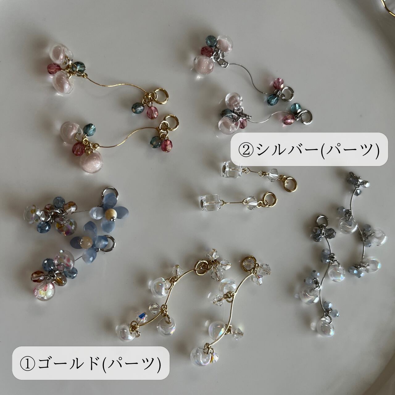 画像はLaraupというイヤーフックタイプ用の金具になっていますが、ピアス.イヤリングでお作りできます。