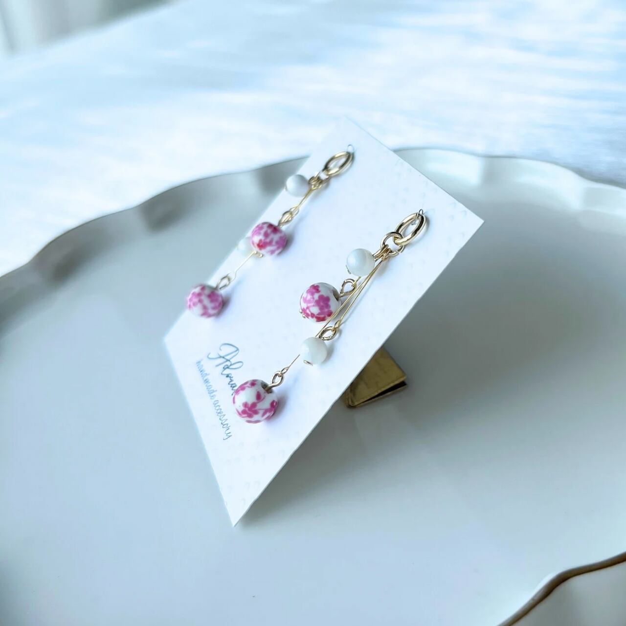 ラズベリーピンクのお花を、ホワイトの天然石が、可憐で、可愛く引き立ててくれます。