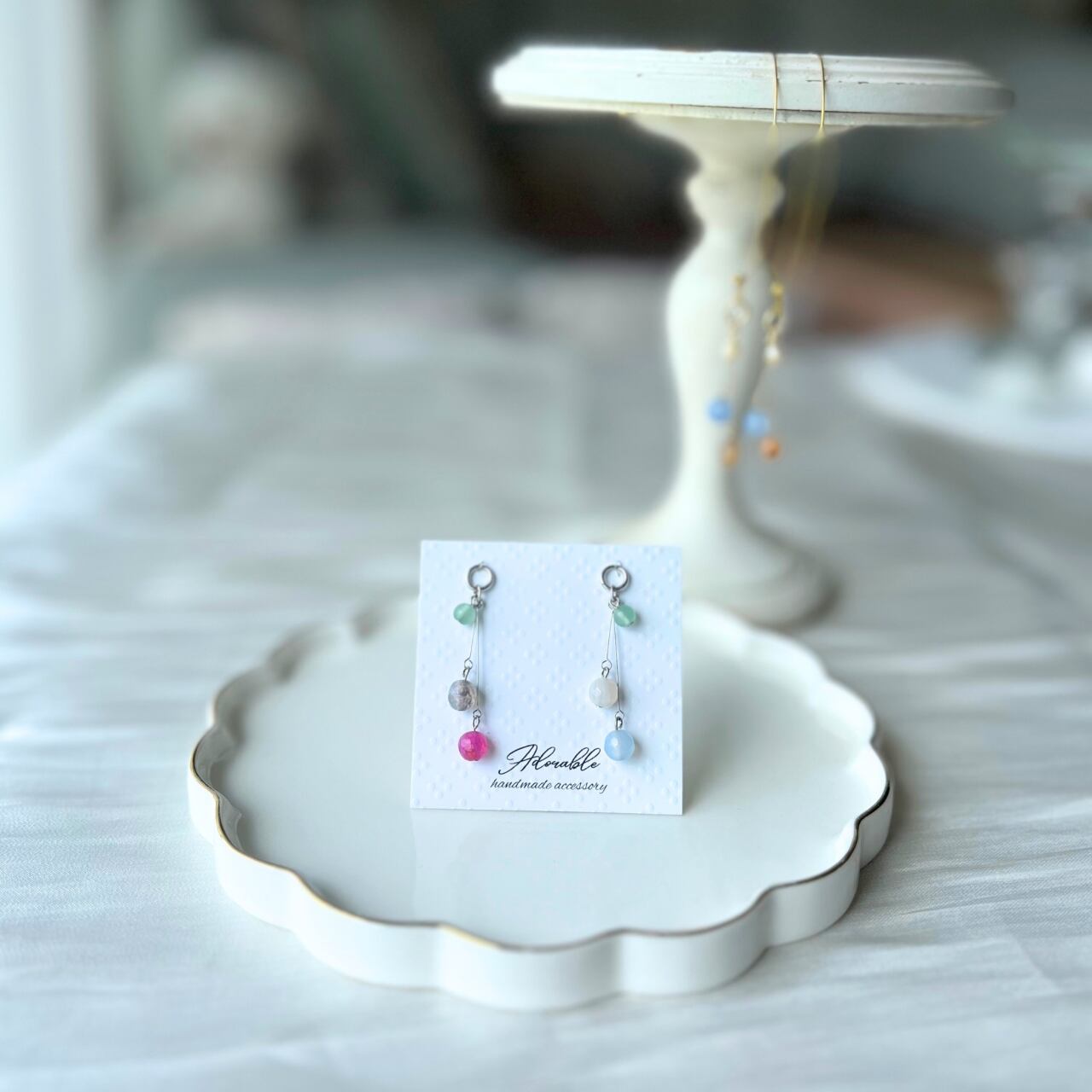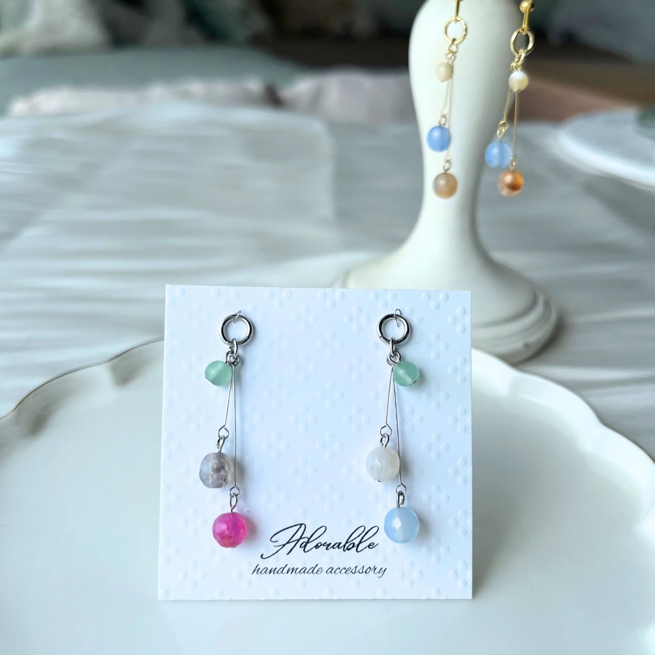 画像はLaraupというイヤーフックタイプ用の金具になっていますが、ピアス.イヤリングでお作りできます。