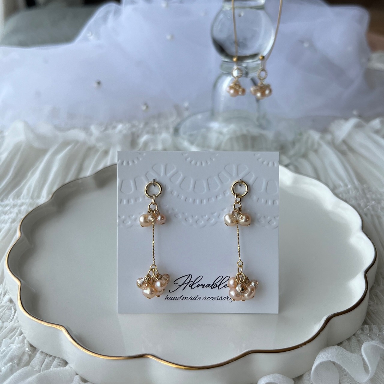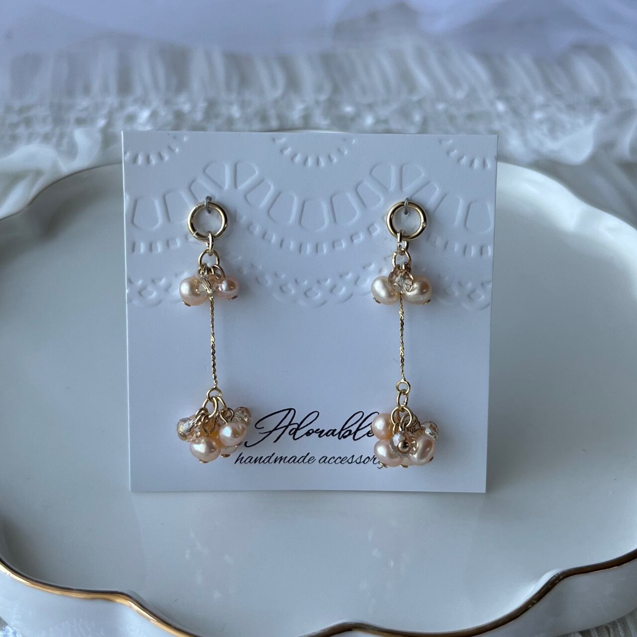 パウダーピンクのつぶつぶminiパールcharm(Long)
